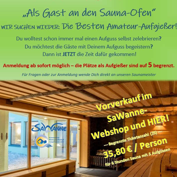 Max. 5 Aufgießer-Plätze zu vergeben. Anmeldung im Hallenbad SaWanne.